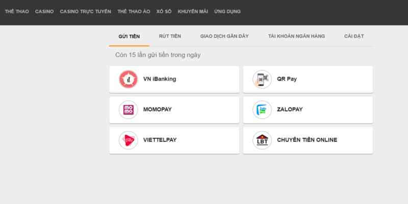 Có nhiều phương thức gửi tiền cho người chơi chọn lựa tại web cá cược: